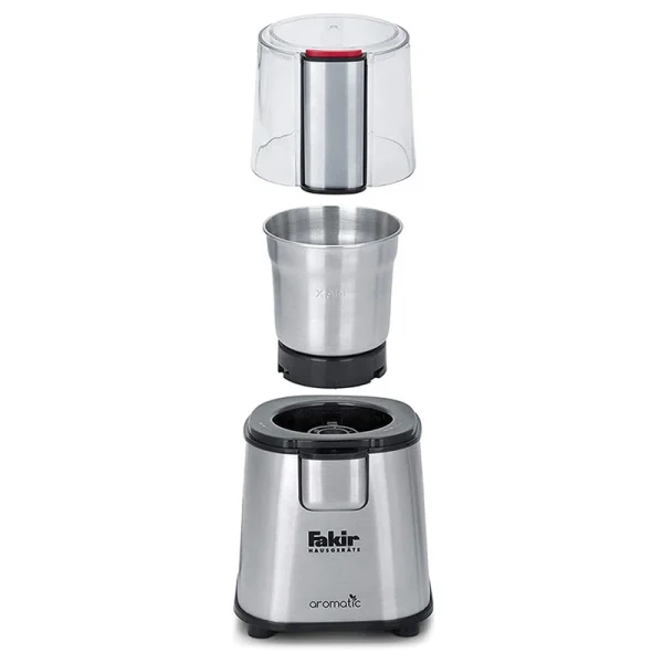 آسیاب فکر مدل Aromatic با طراحی استوانه ای شکل و رنگ نقره ای همراه با جنس استیل با دوام، در لحظه اول نگاه هر مشتری را به سمت خود جلب می کند. بهد از ریختن مواد داخل ظرف آسیاب باد در پوش پلاستیکی شفاف « transparent lid » آن را بست و سپس به کابل را به پریز وصل کرد. و در نهایت کلید روشن شدن آن را می زنیم تا در مدت زمان کوتاه عملیات آسیاب را برایتان انجام دهد.