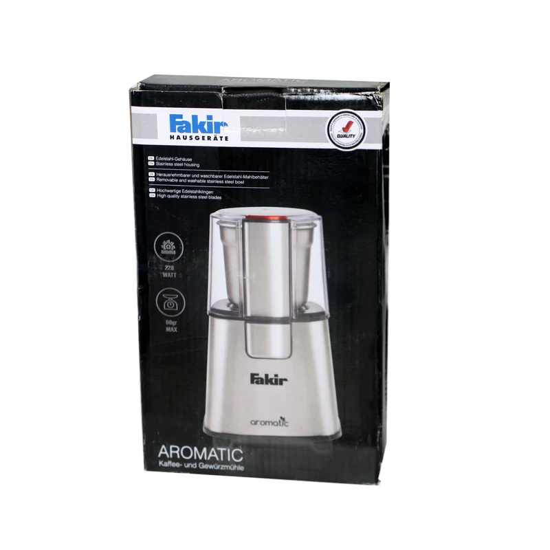 آسیاب فکر مدل AROMATIC وسیله ای برقی، کوچک و زیبا از شرکت نام آشنای فکر می باشد. که برای آیاب کردن انواع دانه ها، سبزیجات خشک، ادویه جات، قهوه و…. مورد استفاده قرار می گیرد. این آسیاب برقی به 220 وات قدرت موتور مجهز است، که پس از اتصال به برق بوسیله دکمه تعبیه شده بر روی آن خاموش و روشن می شود.