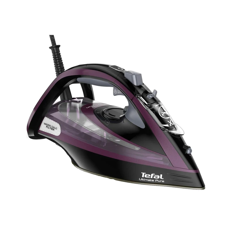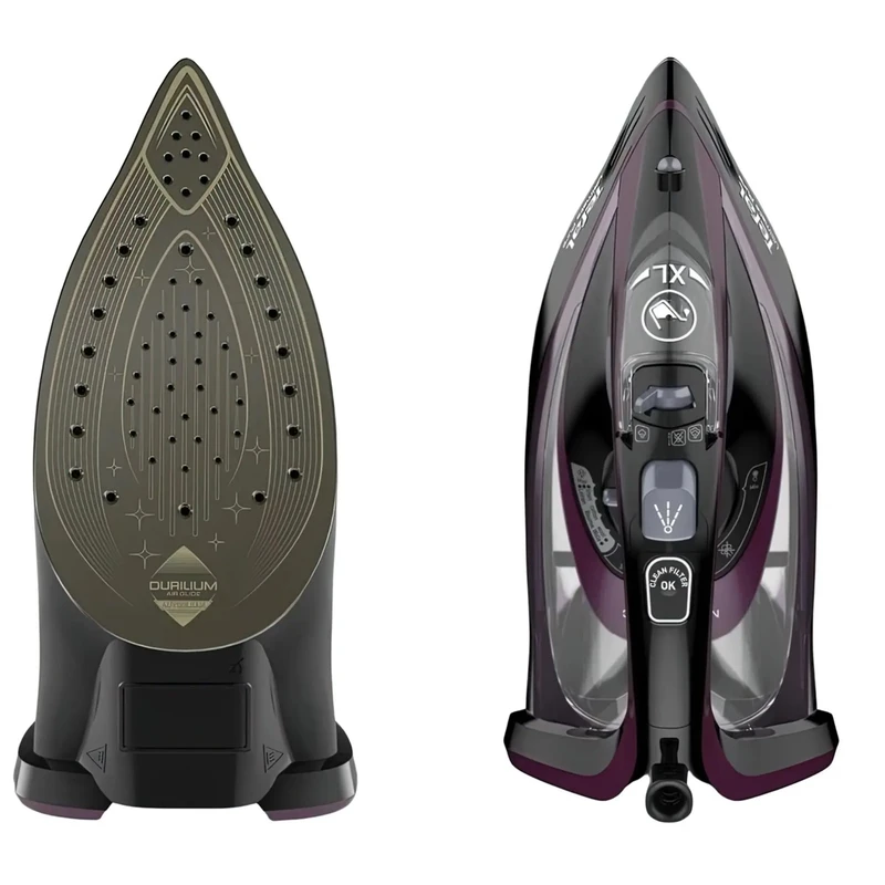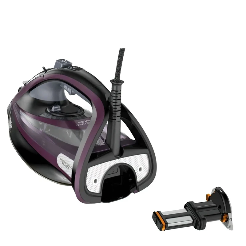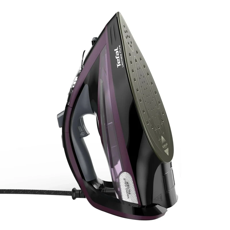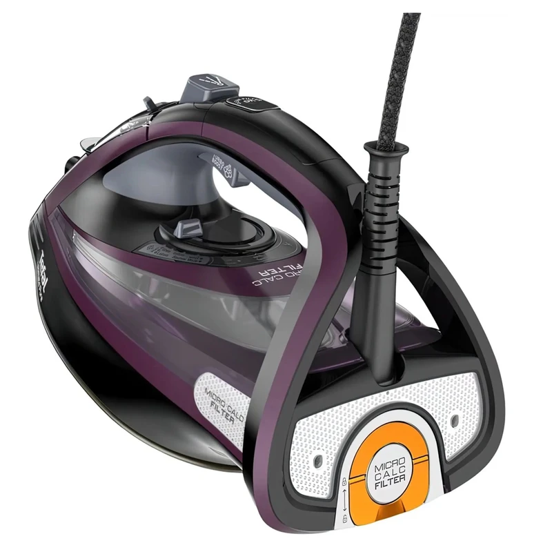 اتو بخار Tefal FV 9835 یک اتوی پرقدرت که بدون صرف زحمت و زمان زیادی از کاربر قادر است بالاترین کیفیت اتو را ارائه دهد. این مدل متعلق به سیستم های اتو ممتاز می باشد. این اتو طراحی پیشرفته و بالاترین عملکرد را با موفقیت ترکیب کرده است، علاوه بر این، مهندسان تفال به قابلیت اطمینان و دوام سیستم اتو توجه کافی داشته اند. اتو بخار مجهز به کفی دوریلیوم است که از یک پایه فلزی ضخیم شده و یک پوشش سرامیکی منحصر به فرد تشکیل شده است. یکی از ویژگی های اصلی زیره، سطح تماس خود تمیز شونده است. ذرات چسبیده به بخاری به سادگی می سوزند. کافی است پس از تمیز کردن، کف آن را پاک کنید و اتو دوباره آماده لغزش روی پارچه است، گویی روی شکاف هوا. سیستم اتو مجهز به حفاظت چند مرحله ای در برابر آهک است. خود مایع و بخار هر دو تمیز می شوند. با عبور از میکروفیلتر، بخار کریستالی شفاف می شود. با بخار دهی فراوان و شدید، حتی لباس های مشکی نیز لکه های سفید رنگی روی سطح پارچه ایجاد نمیکند.