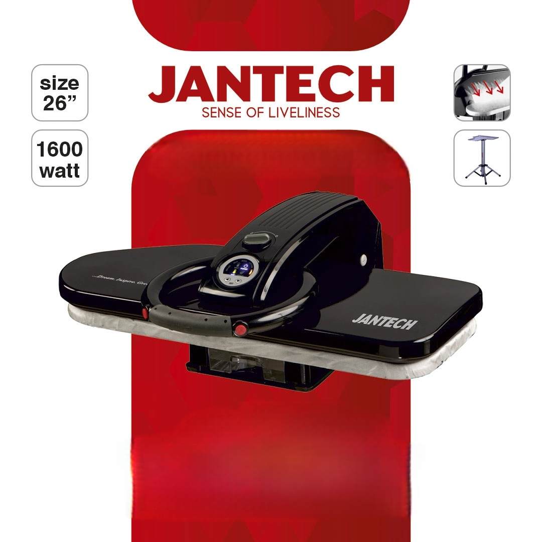 اتو پرس جانتک مدل ECO500 با شاسی بخار و نمایشگر دیجیتال، کاربری ساده و کارآمدی را فراهم میکند. رنگ بدنه نقرهای با دسته و پایه مشکی، ظاهری شیکترین و مدرنترین را به این دستگاه بخشیده است که با هر دکوراسیونی هماهنگی دارد.