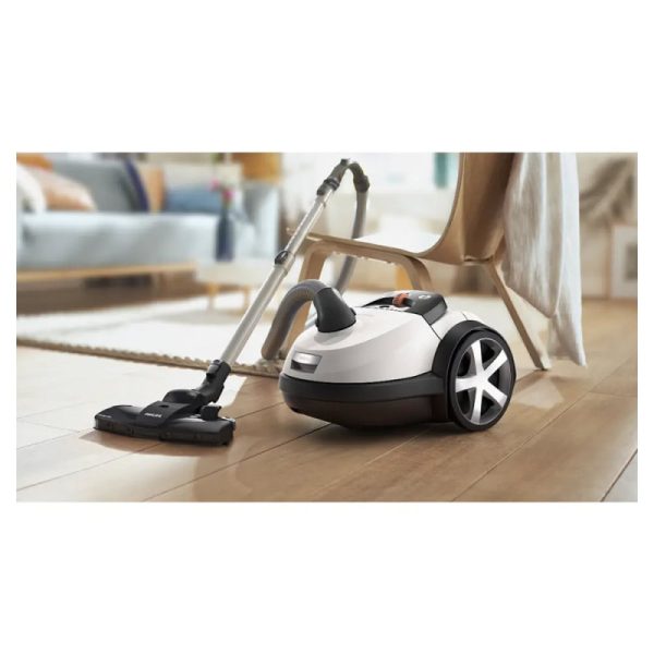 این جاروبرقی فیلیپس 2200 وات دارای ابعاد جمع و جور و وزن مناسب است که حمل و نقل و نگهداری آن را آسان می کند. وجود 2 چرخ بزرگ و چرخ با قابلیت 360 درجه حرکت روان و نرم جاروبرقی روی سطوح را به ارمغان می آورد.