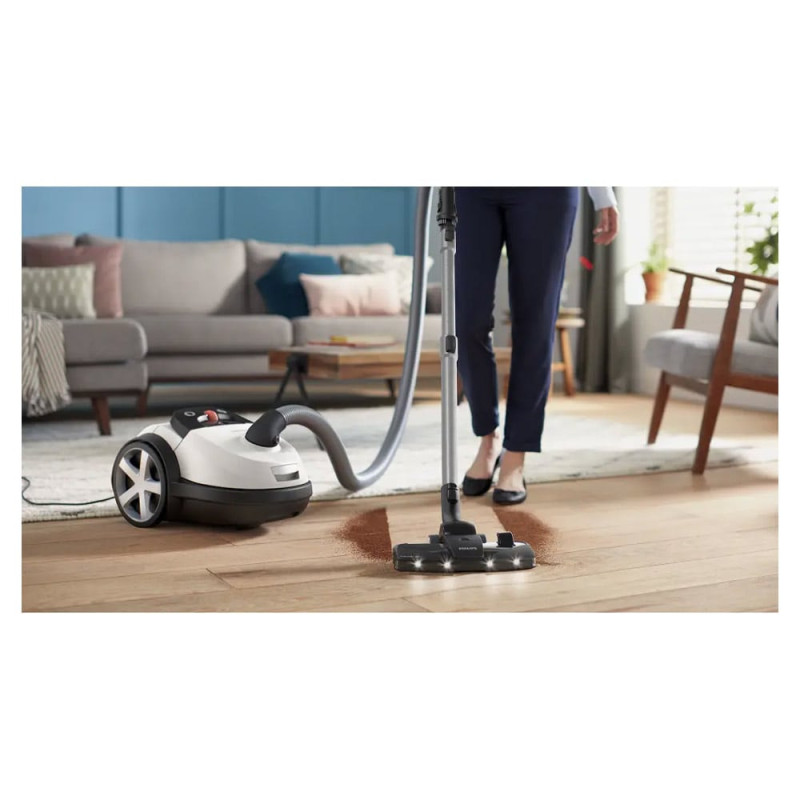 جاروبرقی philips XD8042/10 از نوع کیسه ای با ظرفیت 4 لیتر است که گنجایش بالای کیسه این امکان را فراهم کرده بتوانید مدت زمان طولانی را بدون تعویض یا تخلیه جارو کشید. طول سیم 9 متری جاروبرقی شعاع عملکرد 12 متری را ارائه می دهد که می توان مسافت زیادی را بدون نیاز به تعویض پریز جارو کشید و برق انداخت.