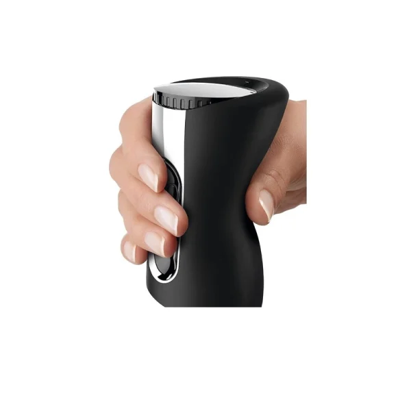 دسته مخلوط از جنس پلاستیک نرم، ضد لغزش، باریک و ارگونومیک ساخته شده تا در آشپزی کنترل بیشتری داشته باشید. روکش ضد لغزش SoftTouch استفاده از گوشتکوب برقی را در حین انجام انواع کارها دلپذیرتر و کارآمدتر کرده و ایمنی نگه داشتن دستگاه را حتی در هنگام مخلوط کردن سخت ترین محصولات تضمین می کند. این دسته نرم با قابلیت جدا شدن نوید عملکرد راحت و ایمن را می دهد.
