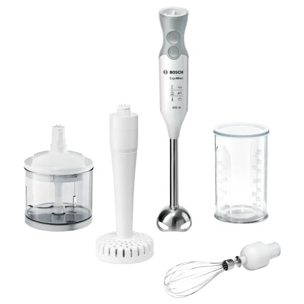 بدنه اصلی گوشتکوب برقی بوش MSM66155 به قطعات مختلفی متصل می‌شود که کارایی هر کدام متفاوت است. پایه فلزی این گوشتکوب با تیغه‌های استیل ضد زنگ، برای له کردن موادی مانند گوشت و بادمجان و … کاربرد دارد. لازم به ذکر است که این قطعه به‌راحتی با دکمه‌های کناری از بدنه اصلی جدا شده و تمیز می‌شود. قطعات دیگر محصول شامل خردکن و همزن‌ها می‌باشند که وظیفه آن ها ریز کردن مواد خوراکی و یا هم زدن سس‌ها و خمیرهای سبک است. همچنین در کنار این گوشتکوب یک پوره ساز ارائه میشود، که برای پوره کردن انواع میوه ها و … مورد استفاده قرار میگیرد. از دیگر قابلیت های دستگاه می توان به طراحی پایه ی آن اشاره کرد که مانع از پخش شدن مواد غذایی میشود.