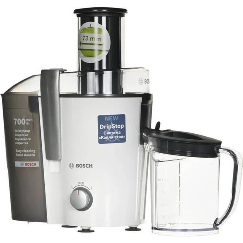 آبمیوه گیری بوش (BOSCH) مدل MES25A0 از دستگاه های پر طرفدار بوش می باشد که با کیفیت بالایی ساخته شده است. آبمیوه گیری MES25A0 با موتور قوی 700 واتی که دارد امکان آبگیری همه نوع میوه را دارد، سایز دهانه ورودی آن 73 میلی لیتر است که به اصطلاح یک سیب کامل را می تواند آبگیری کند. آبمیوه گیری بوش مدل MES25A0 دارای مخزن آبمیوه به اندازه 1.25 لیتر و مخزن تفاله به ظرفیت 2 لیتر است. همچنین دستگاه دارای ایمنی بالایی بوده بدین منظور تا زمانی که تمامی قطعات به درستی روی دستگاه نصب نشود کار نمی کند. لوله خروجی آبمیوه گیری و پارچ طوری ساخته شده اند تا آبمیوه مستقیم وارد پارچ شده و بصورت کاملا تمیز می توانید بدون هیچ نگرانی از چکه کردن آبمیوه، استفاده مفید از ابمیوه گیری بوش را ببرید.