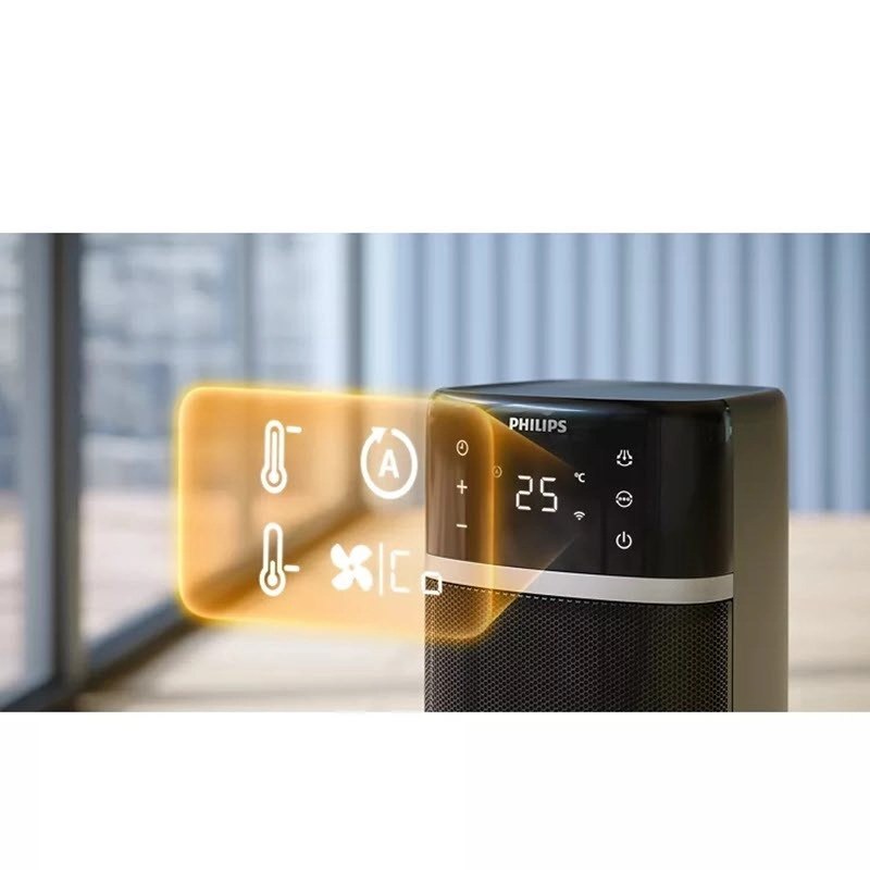همچنین می توانید به لطف داشتن یک برنامه اختصاصی یا اپلیکیشن Air+ فیلیپس به وسیله تلفن همراه ، فن هیتر خود را کنترل ، برنامه ریزی برای میزان گرمادهی ، زمان بندی و کنترل دمای اطراف داشته باشید.