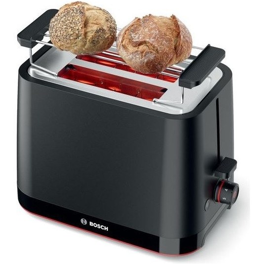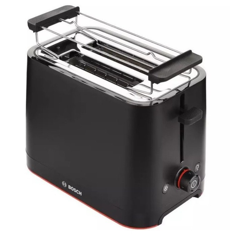 در زمان سرو صبحانه و یا میان وعده همواره نان گرم و برشته در کنار شما می باشد. توستر بوش مدل TAT3M123 با توان 950 وات و عملکرد آسان نان های یخ زده ای را که از فریزر خارج کرده اید، به سرعت گرم و برشته می کند، گویی همین الان نان ها را خریده اید. این توستر در کنار گرم و برشته کردن نان، قابلیت گرم کردن شیرینی جات، کیک و کروسان ها را نیز دارد. به لطف قابلیت تنظیم حرارت در 7 درجه مختلف می توانید نان خود را به هر میزان که دوست دارید، برشته و قهوه ای کنید. این کار توسط دکمه چرخشی روی بدنه امکانپذیر است.