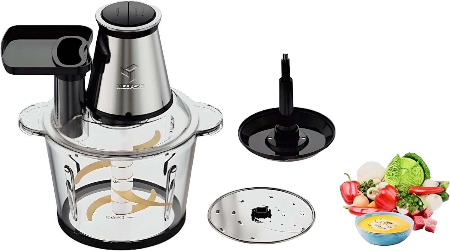 • خردکن چند کاره مباشی مدل MH-CH4001 با طراحی شیک و روکش زیبای مشکی/نقره‌ ای، جلوه‌ ای از ظرافت را به آشپزخانه‌ شما می‌ بخشد، در حالی که طراحی جمع و جور آن تضمین می‌ کند که فضای زیادی از پیشخوان را اشغال نمی‌ کند. کاسه شیشه‌ ای 3 لیتری جادار، فضای کافی برای مقادیر زیاد مواد غذایی را فراهم می‌ کند و آن را برای وعده‌ های غذایی خانوادگی یا پخت و پز دسته‌ ای ایده‌ آل می‌ سازد.