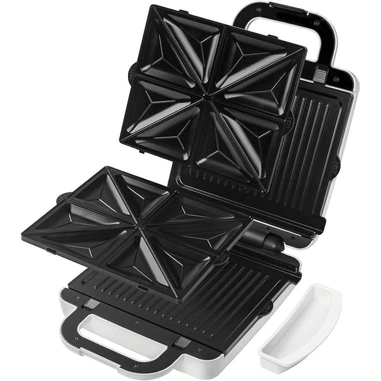 ساندویچ ساز کنوود smp94 بسیار زیبا و کاربردی و با رنگ سفید طراحی شده است. همانطور که اشاره شد این ساندویچ ساز دو کاره و شامل چهار صفحه با قابلیت تعویض شدن است. با استفاده از صفحاتی که به شکل مثلث جدا شده اند، می توان ساندویچ های مثلثی و اسنک های خوشمزه طبخ کرد. با این محصول می توان همزمان 8 اسنک را در چند دقیقه تهیه کرد. دو صفحه تخت هم برای کباب و گریل در نظر گرفته شده است. با استفاده از این دو صفحه که در واقع مانند ماهی تابه عمل می کنند می توان گوشت، همبرگر، ماهی، استیک و فیله مرغ و حتی سبزیجات را کباب کرد.