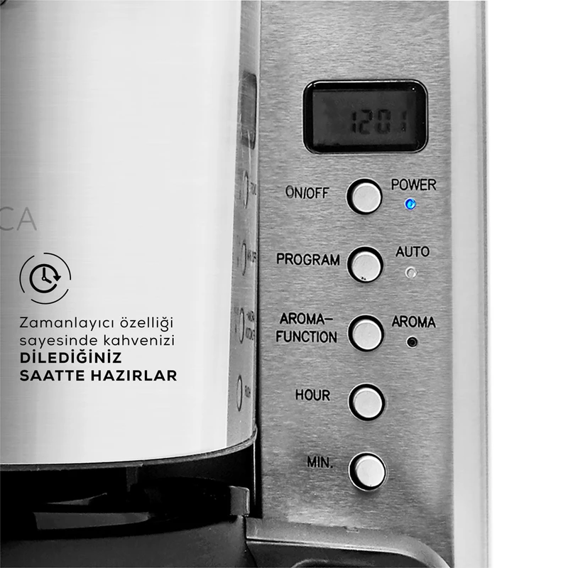 امکانات ویژه قهوه‌ساز : حالت آماده به کار / صفحه گرم نگهدارنده قهوه / تایمر