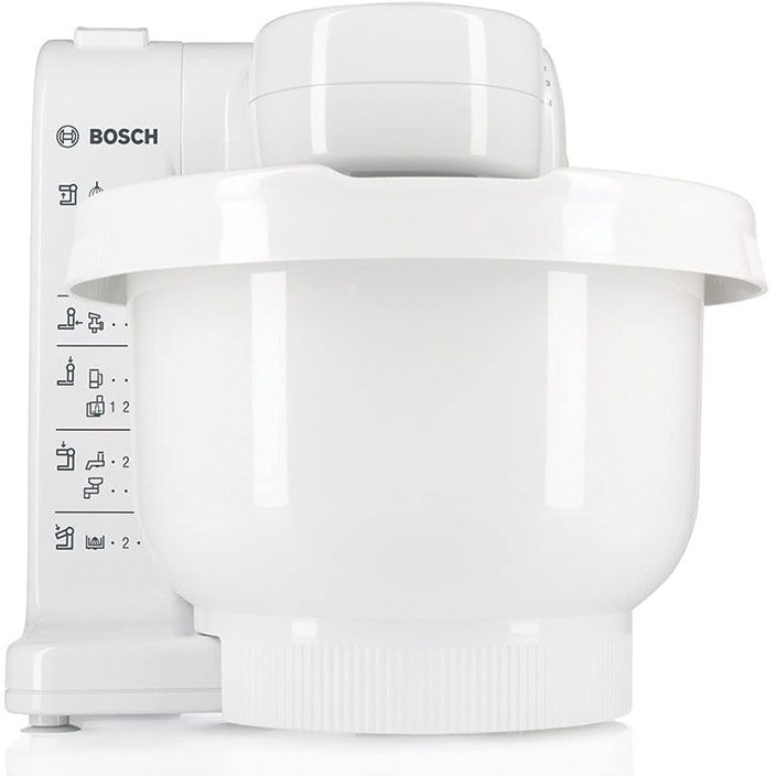 ماشین آشپزخانه بوش BOSCH مدل MUM4427 با توان 500 وات دستگاهی حرفه ای و کاربردی با ظاهری زیبا بوده که جلوه منحصر به فردی به آشپزخانه شما میبخشد . ماشین آشپزخانه 4427 دارای کاسه ای با ظرفیت 3.9 لیتر بوده که معادل 2 کیلوگرم مواد را در خود جای میدهد . درپوش دستگاه منطبق با کاسه بوده و مانع از ریختن مواد غذایی به بیرون میشود همچنین توسط محفظه تعبیه شده روی درپوش میتوانید مواد خوراکی را حین کار به مخلوط اضافه نمایید.