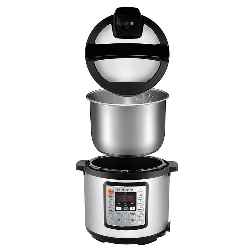 ظرف این مولتی کوکر Nutricook از استیل ضد زنگ ساخته شده و هیچ گونه پوشش شیمیایی ندارد. همچنین قابل شست و شو در ماشین ظرفشویی میباشد. گنجایش این ظرف حدودا 6 لیتر است و امکان تهیه و فراهم کردن غذا برای حداکثر 12 نفر را دارد.