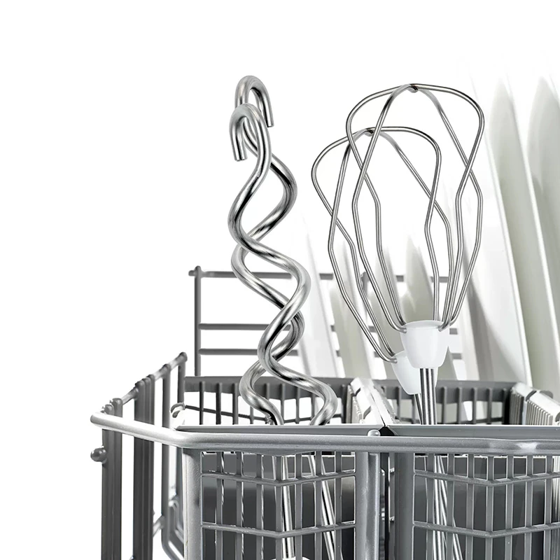 دو پره ی این همزن از جنس استیل ضد زنگ است که طراحی شیکی دارند و از کیفیت بالایی برخوردارند. طول سیم دستگاه 1.4 متر است که محففظه ی مخصوص جمع آوری سیم دارد.