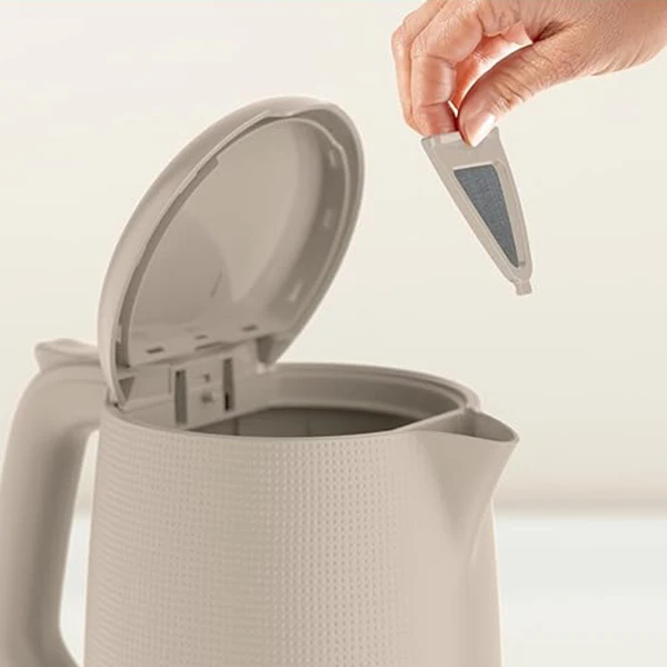 کتری برقی تفال مدل KO2M0B27 دارای صافی هم است تا اجرام آب جوشیده وارد نوشیدنیها نشود.