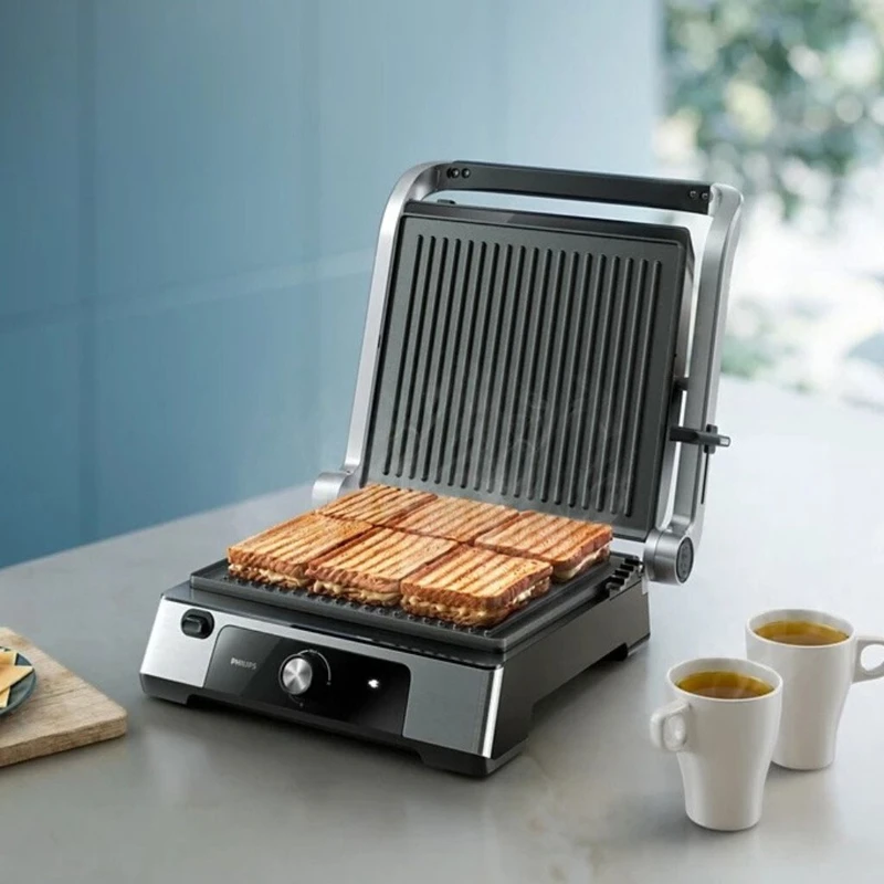 از کباب کردن بدون دردسر و طعم خوشمزه و کبابی غذاها لذت ببرید. گریل فیلیپس مدل HD6301/90 از سری 5000 محصولی فوق العاده باکیفیت با گرمایش سریع، بشقاب های قابل جدا شدن و تمیز کردن آسان تجربه کباب کردن انواع گوشت ها و مواد غذایی را بدون زحمت و معطلی زیاد ارائه می دهد. قدرت بالا برای پخت سریع شما را شگفت زده می کند. توان 2200 وات صفحات گریل را به سرعت گرم کرده و دمای دقیق و ثابتی را برای نتایج عالی حفظ می کند.
