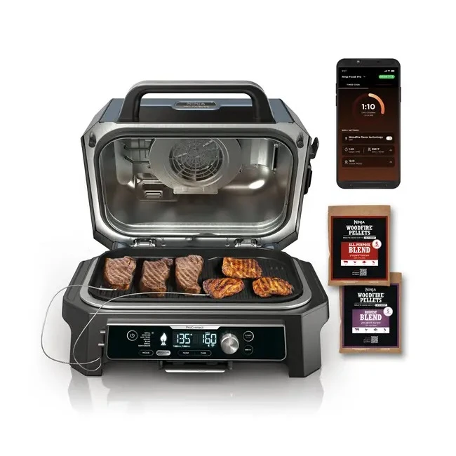 همانطور که آشپزی می کنید در جمع خانواده یا دوستانتان گفتگو کنید و خوش بگذرانید؛ بدون اینکه نیاز باشد مدام پای دستگاه گریل و چک کردن غذایتان باشید. این دستگاه قابلیت اتصال به وای فای wi-fi و بلوتوث را دارد و شما می توانید با اپلیکیشن نینجا به طور مستقیم باربیکیو را با موبایل خود کنترل کنید، برنامه پخت مناسب، زمان و دمای پخت را تنظیم کرده و از پیشرفت پخت و پز غذا مطلع شوید. همچنین اعلان ‌های فوری را مستقیم از تلفن خود دریافت کنید.